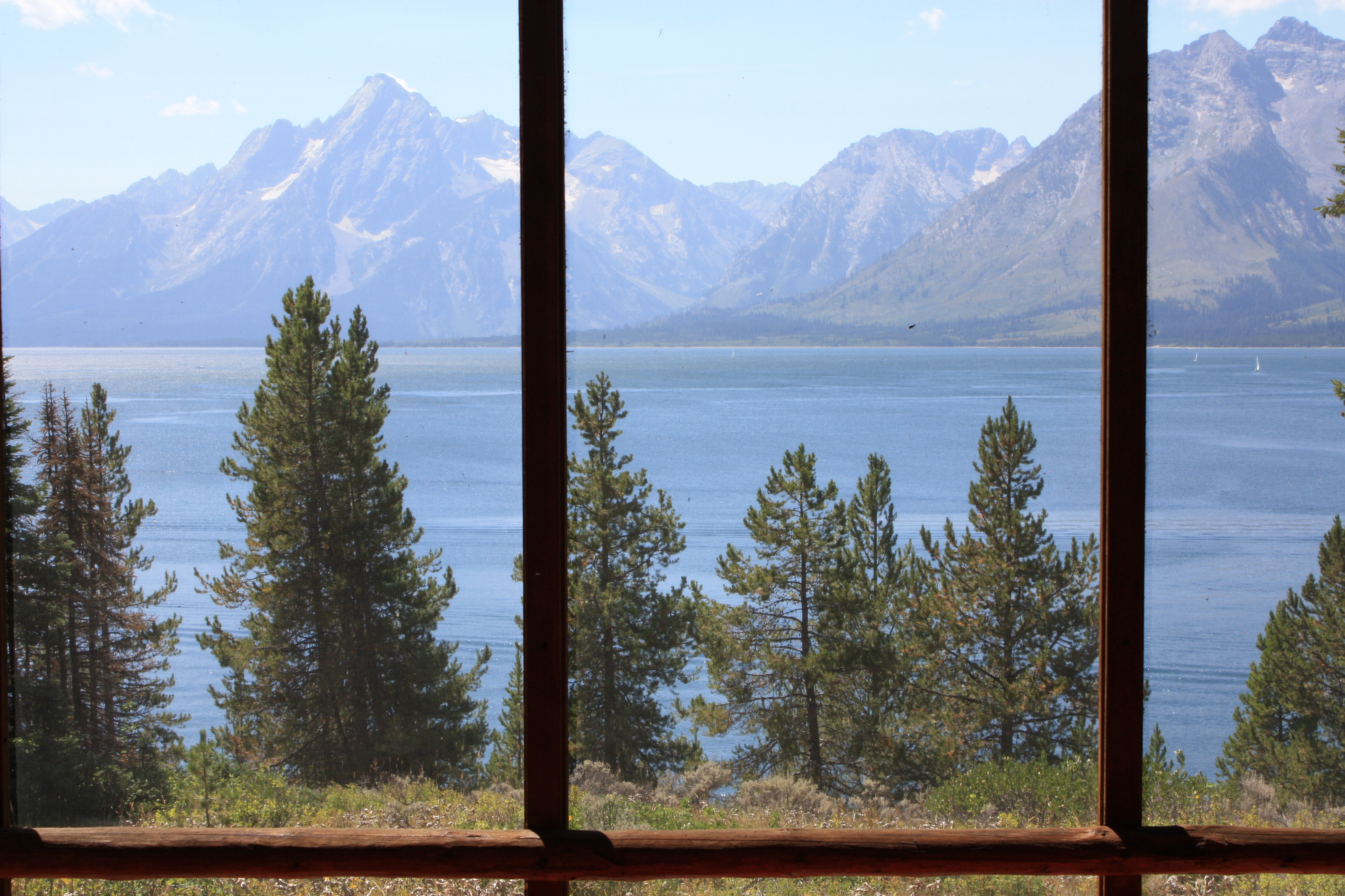 The lodge has a stunning view of the lake and the Grand Tetons. The Johnson family used it as a vacation retreat, adding guest cabins, a barn and boat dock for entertainment and recreation.